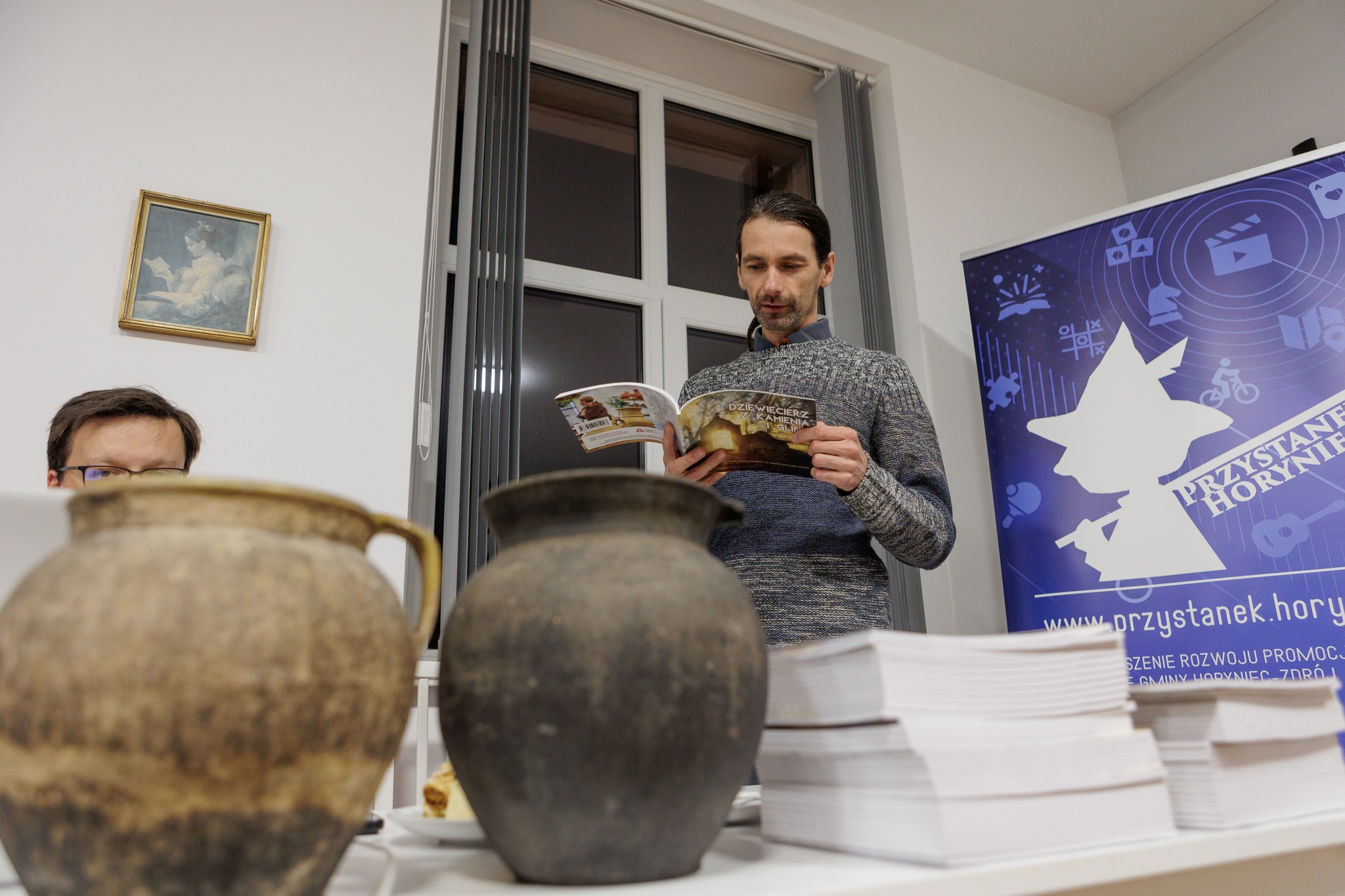 Za nami spotkanie podsumowujące nasz projekt, na które zaprosiliśmy wolontariuszy, mieszkańców Dziewięcierza oraz gminy Horyniec-Zdrój. Kiedy rok temu Grzegorz Ciećka rozpoczął z nami rozmowy na temat garncarstwa i jego potencjału nie wiedzieliśmy, że w tak krótkim czasie dzięki wsparciu Narodowego Instytutu Dziedzictwa uda się połączyć unikatowe walory tej małej miejscowości. Nasz projekt Dziewięcierz z kamienia i gliny koncentrował się głównie na cerkwisku a garncarstwo miało mieć charakter próby zainteresowania tematem lokalnej społeczności. Finalnie po zakończeniu prac na cerkwisku glina wciągnęła nas do końca. Dzięki kontaktom z Medynią Głogowską i poszerzeniu wiedzy na ten temat, nasze przyszłe działania chcemy zwrócić na gliniane tory. Pociąg do gliny ruszył i ciężko będzie go zatrzymać 😉 Obserwujcie nasze działania na stronie www.dziewiecierz.horyniec.info